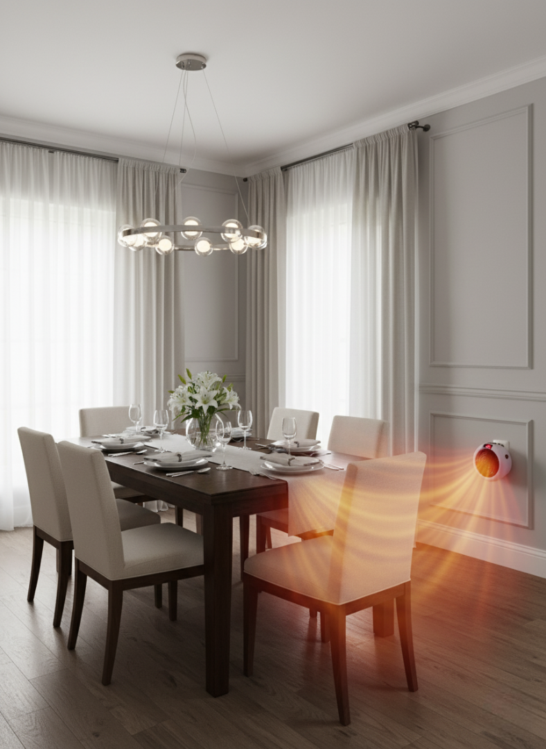 El calefactor combina rendimiento, elegancia y practicidad. Ya sea en el dormitorio, la oficina o el salón, proporciona una calidez envolvente con un diseño que se integra perfectamente en la decoración del hogar.